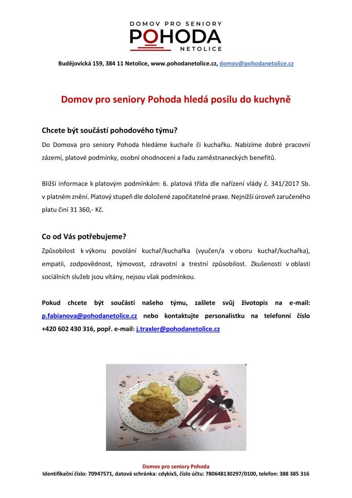 Je pro nás důležité být součástí místní občanské společnosti a být dobrým zaměstnavatelem. Řídíme se Etickým kodexem zaměstnanců Domova pro seniory Pohoda a držíme se motta: V pohodě v Pohodě.